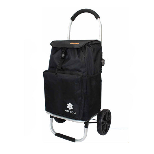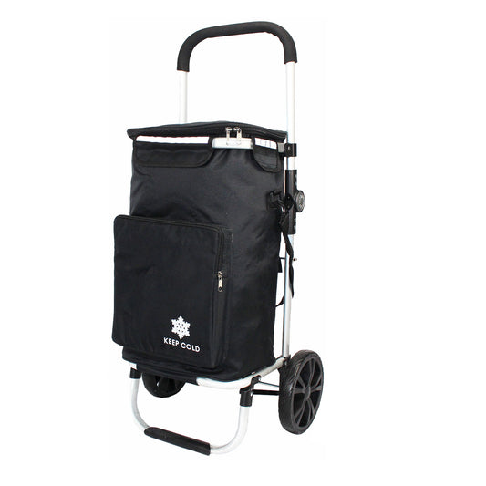 Shopping Trolley with Wheels Lightweight Foldable Aluminium Frame Cart with Insulated Cooler Bag for Grocery, Market and Picnic